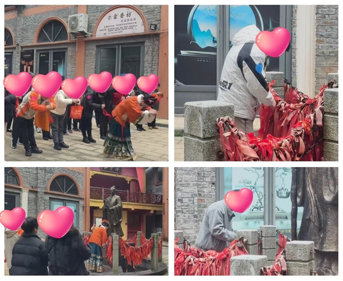 拜毕,红绳在手,系于月老座前——